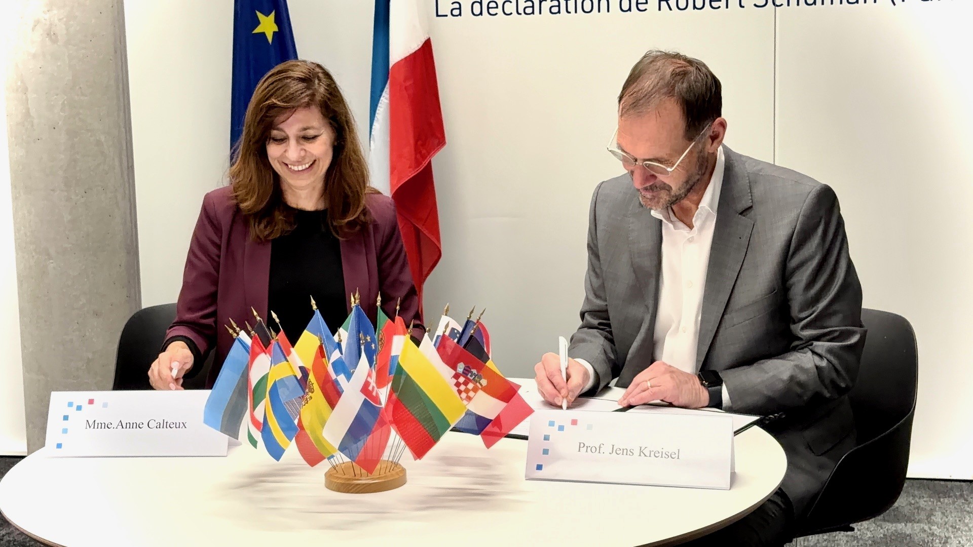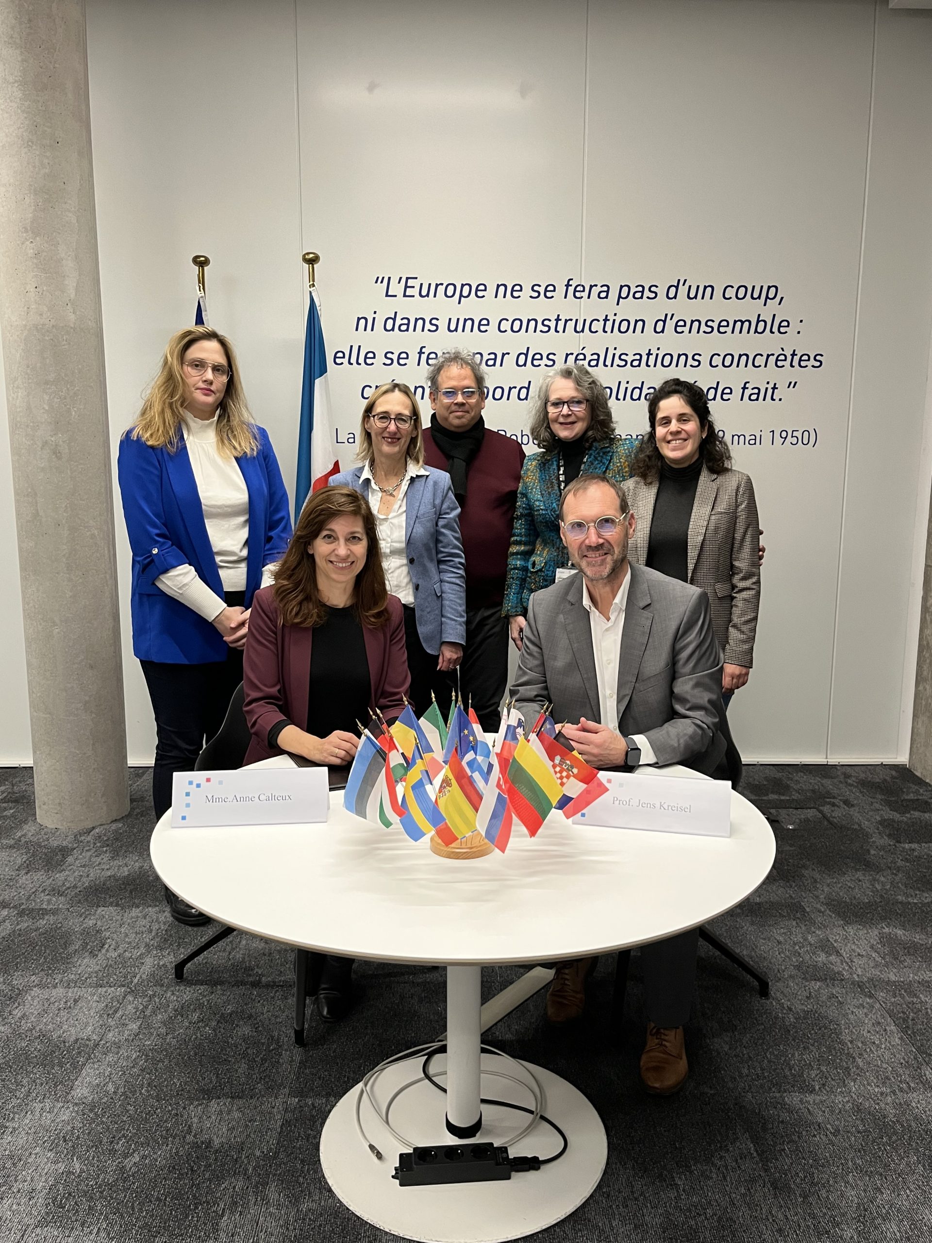 On Wednesday, 28 January 2026, in Belval, the Rector of the University of Luxembourg, Prof. Dr Jens Kreisel, and the Head of the Representation of the European Commission in Luxembourg, Ms. Anne Calteux, in the presence of Ms. Christine Kormann, Director of Stakeholder Relations and Corporate Services Directorate at the Publications Office of the European Union, signed the agreement on the establishment of the European Documentation Centre at the University of Luxembourg (EDC-UNILU).