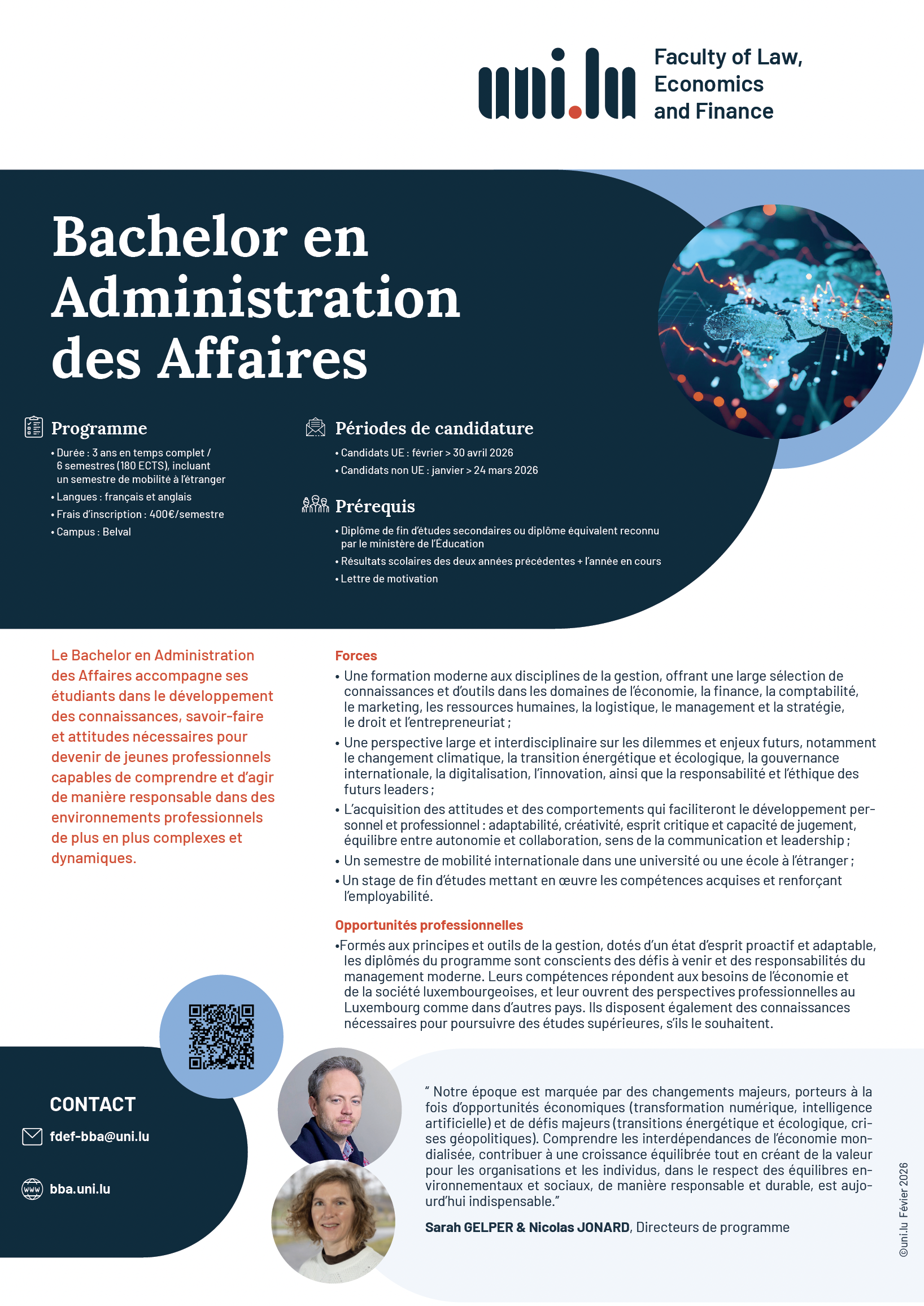 *The Bachelor in Business Administration will gradually replace the Bachelor en Gestion over the years 2024-2026. Consequently: