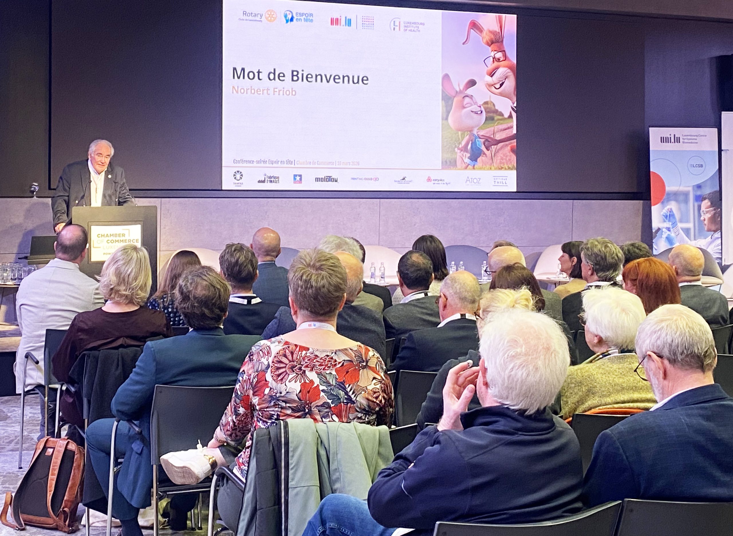 Getragen von den Rotary Clubs in Luxemburg lädt die Initiative „Espoir en tête“ die Öffentlichkeit zur Premiere eines Films ein und unterstützt damit gleichzeitig die Forschung zu Hirnerkrankungen. Seit ihrer Einführung in Luxemburg hat sie mehr als 733.000 € gesammelt und damit 22 Forschungsprojekte finanziert. Durch die Bereitstellung wichtiger Anschubfinanzierung werden auch wissenschaftliche Karrieren befördert. Unterstützt werden insbesondere Pilot- und explorative Studien in frühen Forschungsphasen, die in den letzten Jahren häufig zu bedeutenderen Fördermitteln und wissenschaftlichen Publikationen führten. „In den letzten zehn Jahren hat diese Unterstützung dazu beigetragen, dass junge Forschende und Teams an der Universität wachsen konnten“ betont Philippe Lamesch, Leiter des Office of Fundraising der Universität. „Wir sind äußerst dankbar für die Unterstützung, die Forschende seitens Rotary erhalten haben seit Norbert Friob ‚Espoir en tête‘ ins Leben gerufen hat und die Initiative rasch zu einer festen Institution in Luxemburg gemacht hat. Es ist eine vorbildliche Initiative, die zeigt, wie Philanthropie und wissenschaftliche Forschung Hand in Hand gehen können.”
